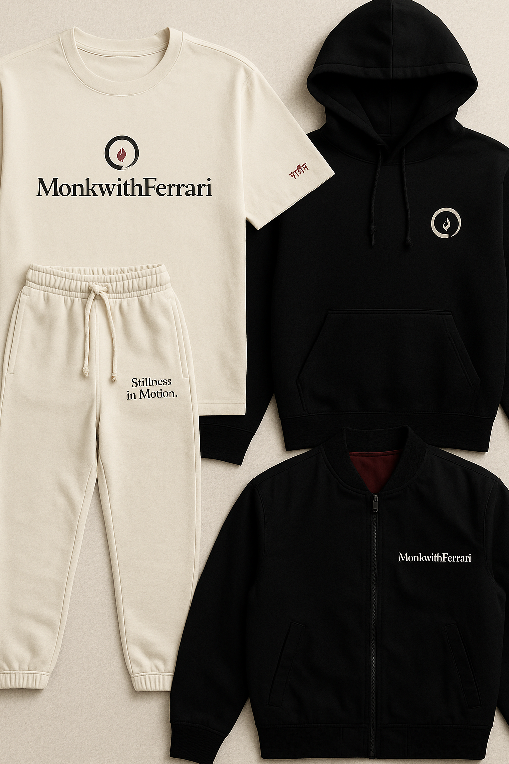 Monk with Ferrari unites spiritual depth with minimal design and sustainable creation — so you can move through the world peacefully powerful.